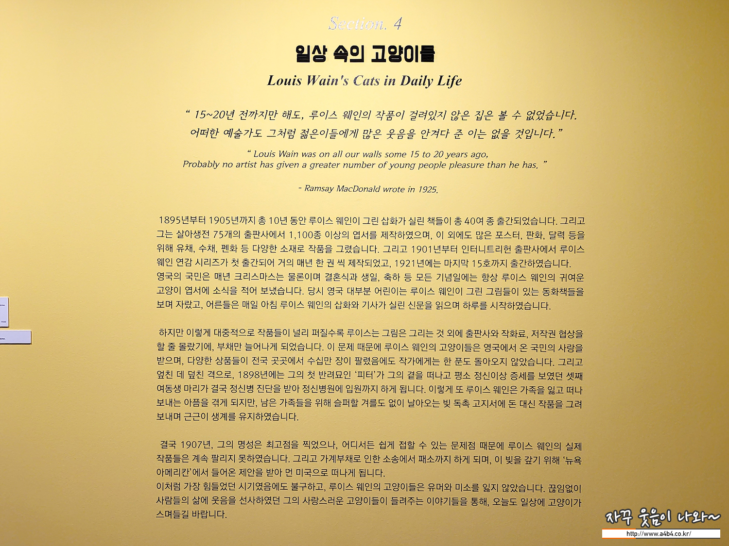 전시장 한 켠에는 루이스 웨인의 전기영상이 상영되고 있습니다. 만약 작가를 전혀 모르거나 영화를 보지 않으셨다면, 이 전기영상을 먼저 감상하시고 전시회장을 보시는 것도 좋아 보입니다.