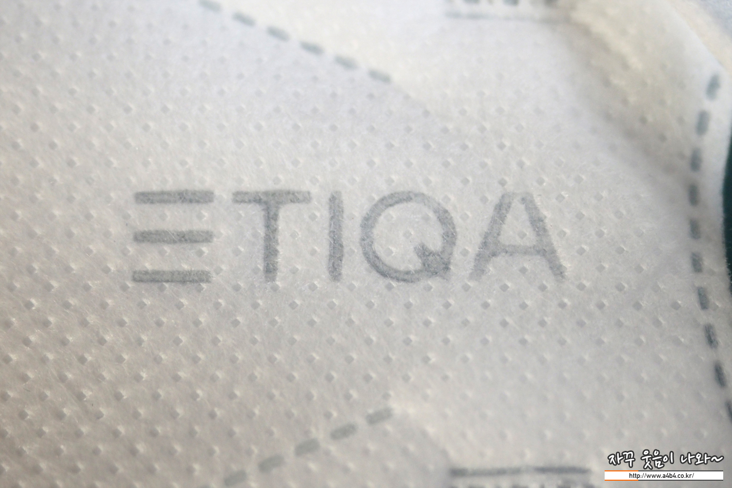 마스크 전면에는 브랜드명인 ETIQA가 음각되어 있으며, 반대 쪽에는 생산국이 영문으로 표시되어 있습니다.
