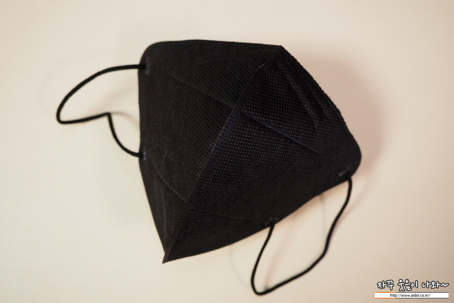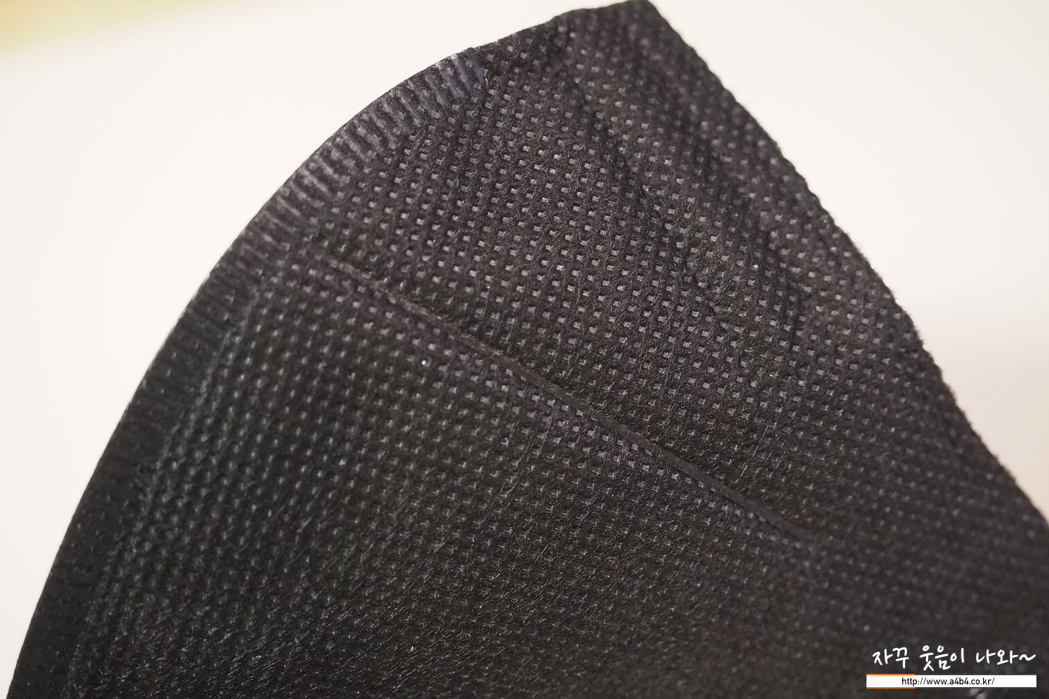 마스크 발색은 유광에 가까운 블랙 컬러를 보이며, 염색이나 발색 상태가 심도있거나 깔끔하지는 않습니다. 고급진 블랙 컬러마스크는 아니네요 (글 중간 타사 블랙컬러 마스크와 비교해 보세요)