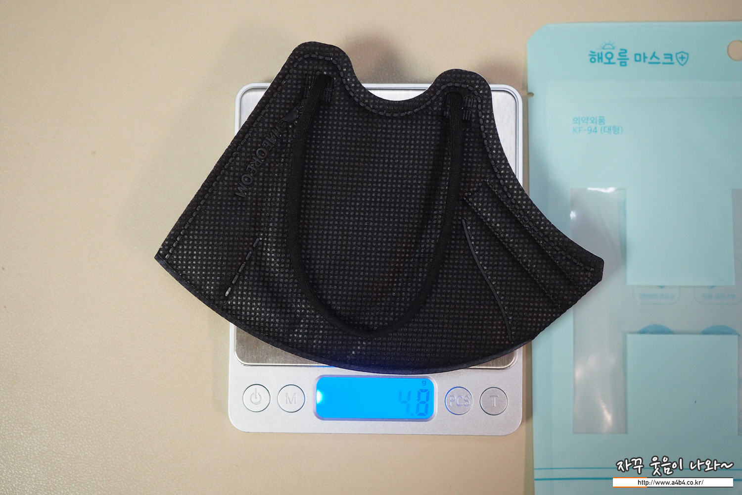 KF94 해오름 마스크 대형 블랙 무게는 4.8그램으로 타사 마스크와 비슷한 무게를 보이네요.