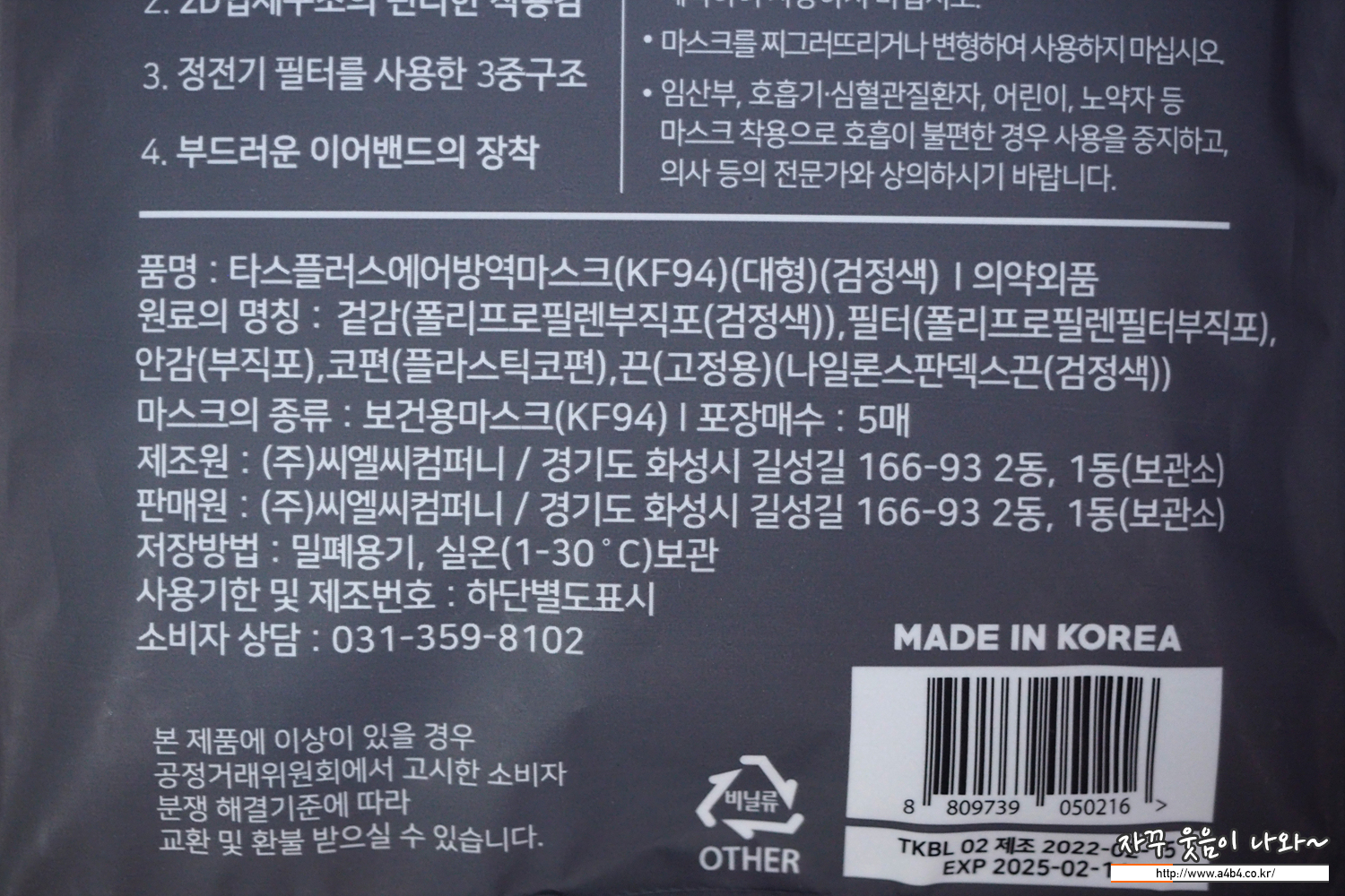 타스플러스 마스크 KF94 새부리형 블랙 사이즈 및 착용감 후기 by 주식회사 씨엘씨컴퍼니