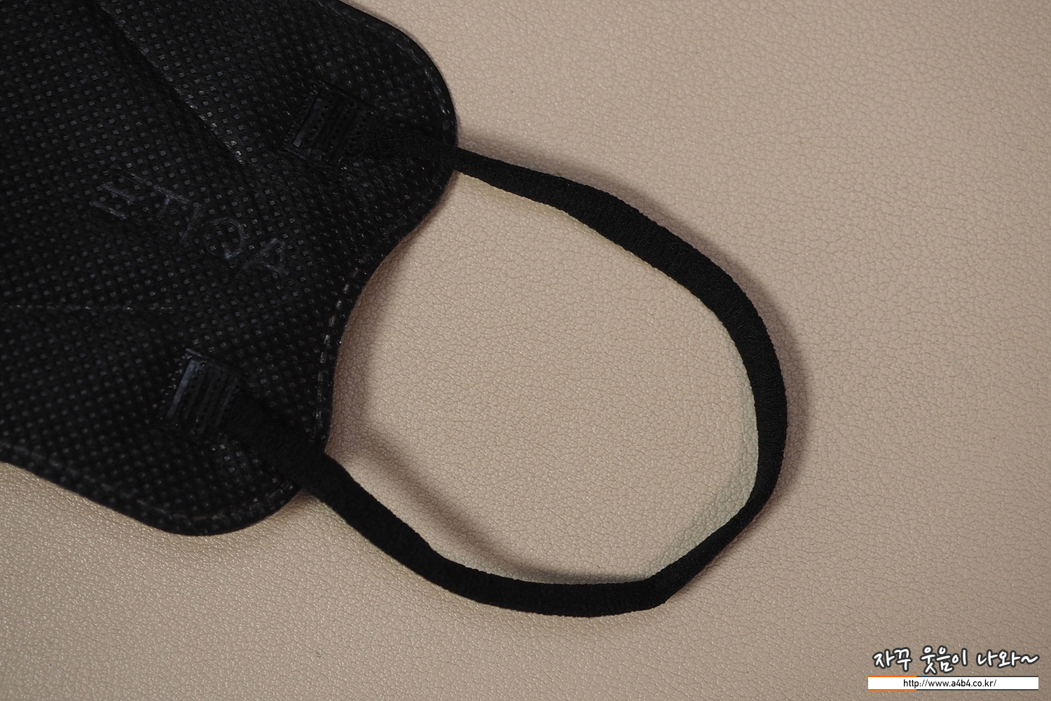 마스크 디자인은 일반적인 입체형마스크 디자인을 보입니다. 전면 오른쪽에는 제품명이 각인되어 있지만 다른 블랙마스크의 각인과 비슷하게 깔끔해 보이지는 않습니다.