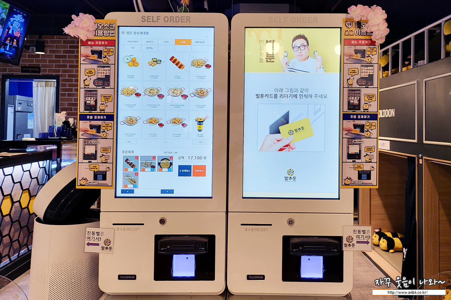 주문은 아래 키오스크에서 입장시 받은 카드와 함께