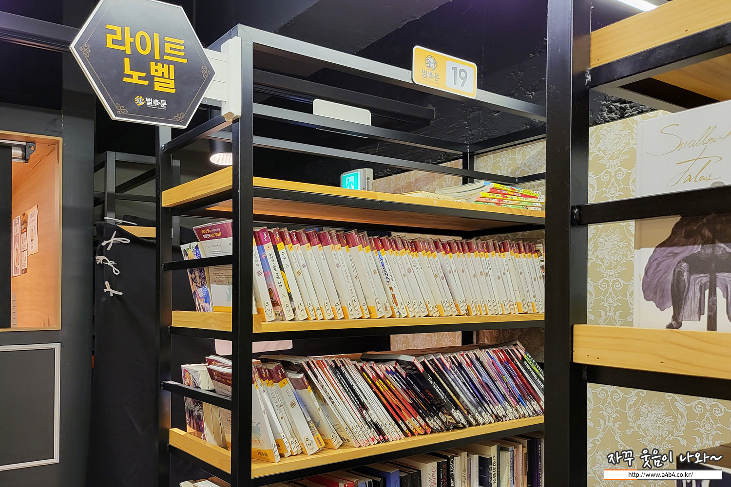 만화카페 벌툰은 사진과 같이 단행본 만화들이 준비되어 있습니다. 그리고 약간의 소설과 월간지가 준비되어 있습니다. 예전 만화방의 대본소 타입의 만화들은 없네요.