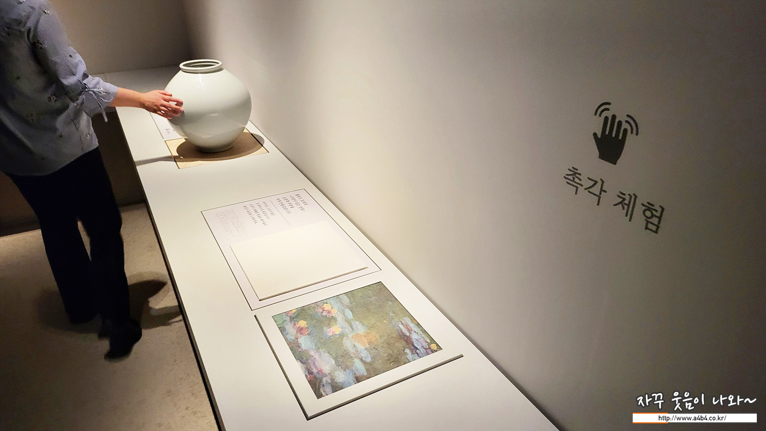 모네의 수련과 달항아리 동자승 모형을 만지면서 작품의 촉각적인 부분도 느낄 수 있는 기회입니다.