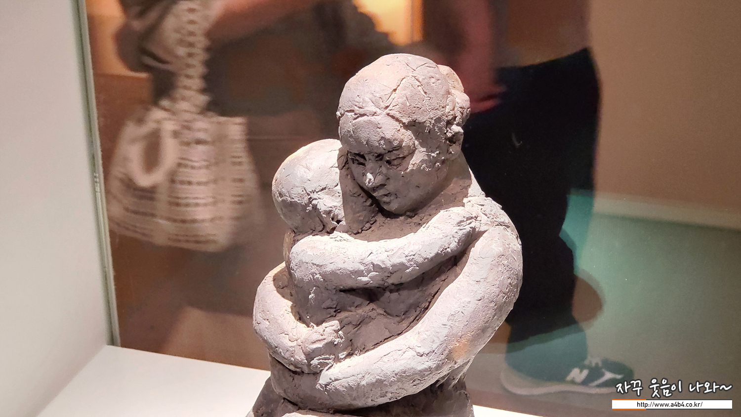 온 세상 풍파에서 아이를 지켜내겠다는 굳은 의지를 드러내는 듯한 어머니와 아이를 조각했습니다.