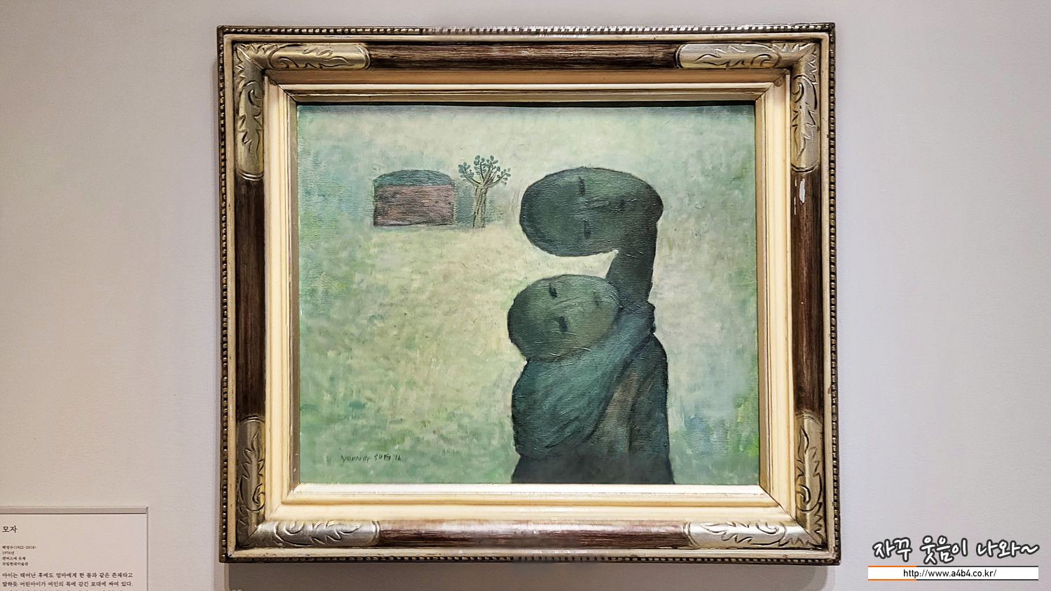 옆집 친구는 학교에 간다는데, 서운한 마음이 없다면 거짓말이겠지요. 그래도 소녀는 지긋이 미소 짓고있습니다. 떼쟁이 막냇동생이지만 내 가족이니까요. 박수근은 캔버스에 채도가 낮은 물감을 겹겹이발라서 독특한 질감을 완성했습니다.