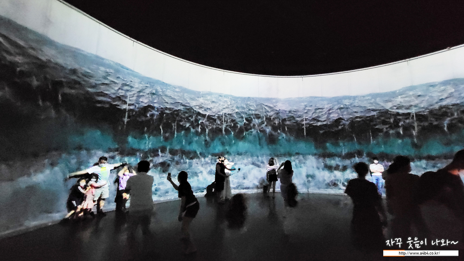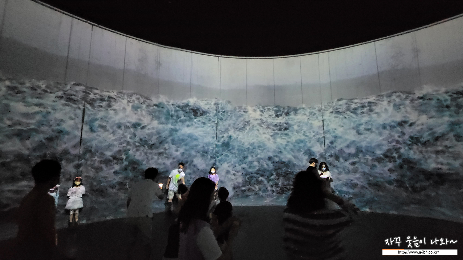 검푸른 초대형 파도 공간. 다소 밝고 조명없는 분위기여서 가족 인증샷 찍기 좋은 공간 중 하나