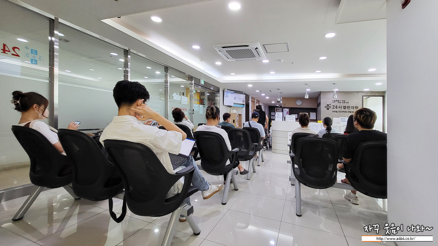 제가 방문한 광복절 공휴일에도 24시 열린의원에는 2분의 의사선생님께서 진료를 하고 있으셨네요. 대기환자는 19명, 다만 워낙 빠르게 진료하시고 처방전 발급하셔서. 생각보다 시간이 오래 걸리지는 않습니다. (빠른 진찰과 상담이 대기하시는 분들에게는 좋겠지만 막상 진료받는 입장에서는 다소 아쉽네요)