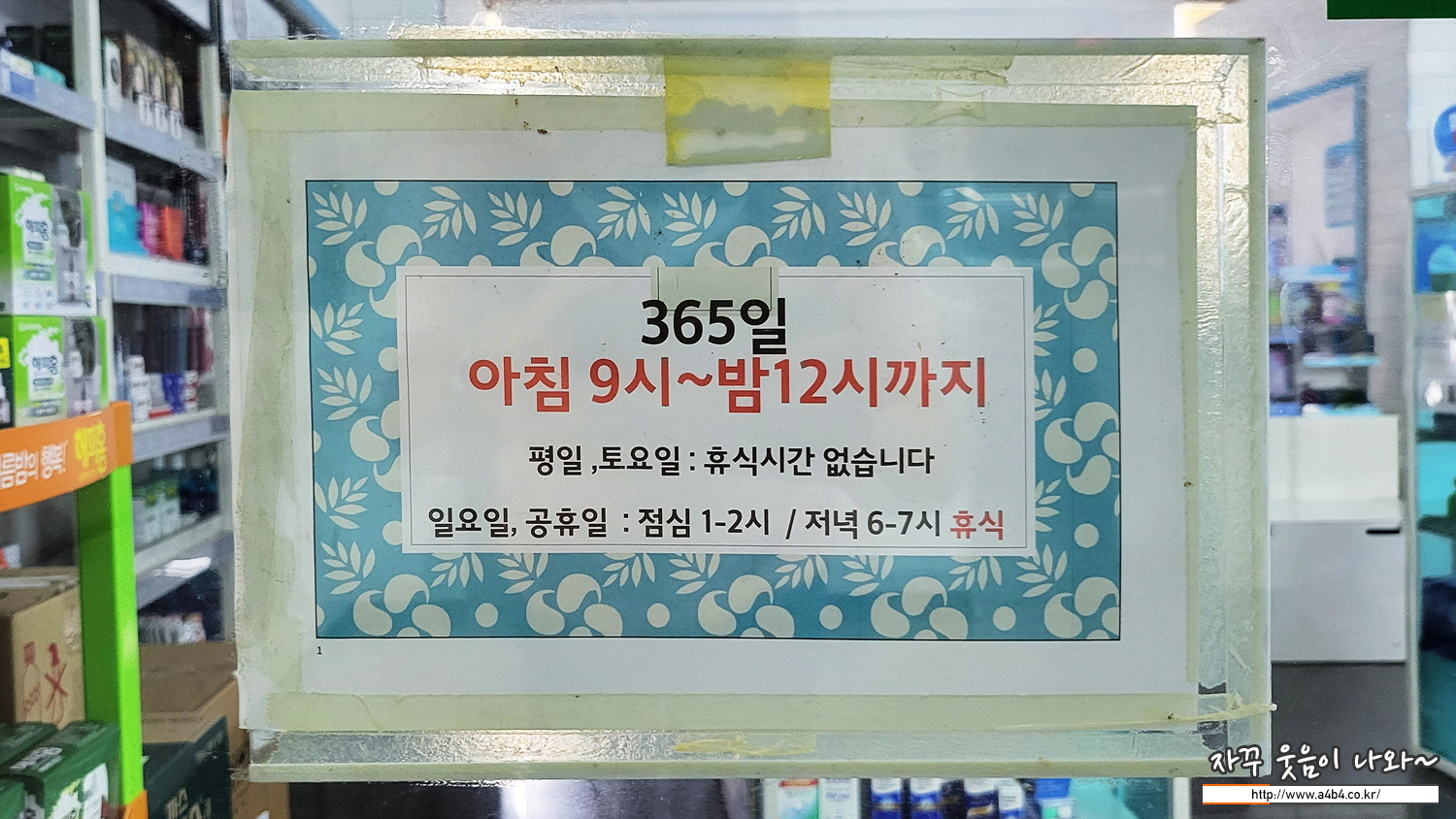 아래 365일 매일여는 온누리약국도 오늘 소개하는 24시 열린의원 잠실점과 같이 365일 저녁 12시까지 운영하고 있습니다. 병원 처방받고 약국찾아 헤매는 수고는 없습니다. 약사님 분들께도 감사하다는...