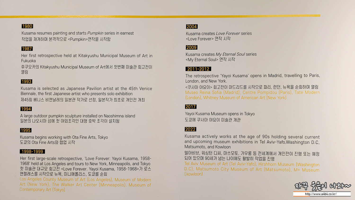 이번 쿠사마 야요이 전시회 '영원한 여정' 소개입니다.