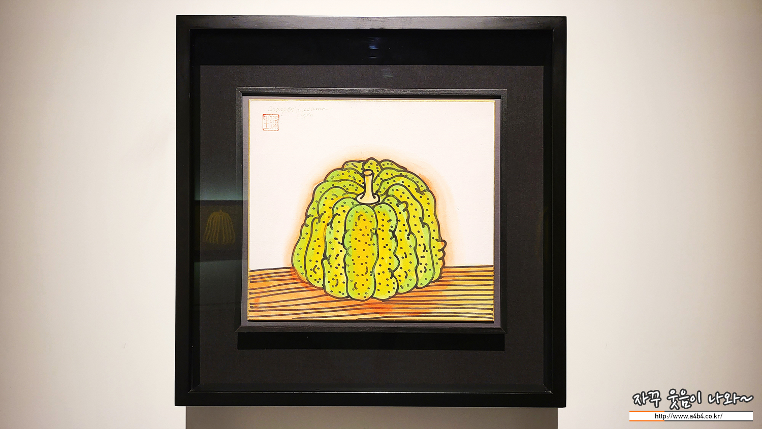 정신병원에서 퇴원 후 본격적인 호박 연작을 시작한 시기인 1980년. 당시에는 사인과 낙관을 동시에 사용했구나
