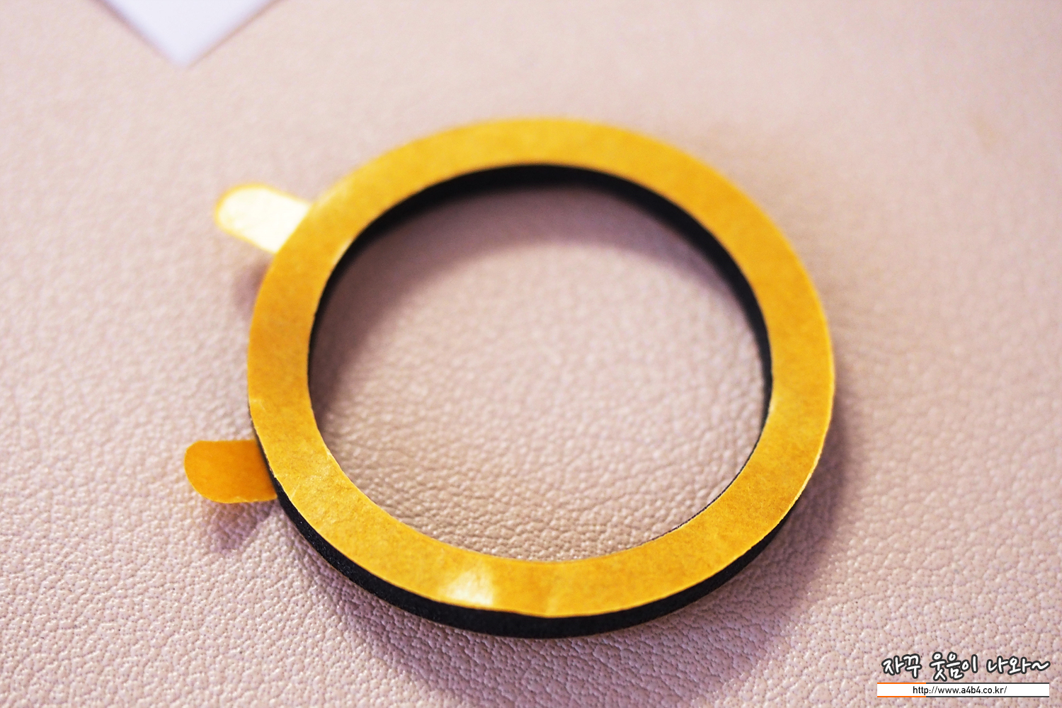 갤럭시 위치나 애플워치 등 스마트워치에 액정보호필름을 접착해본 분들께서는 알겠지만, 정확하게 중앙에 접착하는 것이 쉽지는 않습니다. 그러나 누아트 제품은 이렇게 양 손으로 잡을 수 있는 스티커 손잡이가 있어 강화유리를 손으로 잡지 않고도 접착이 용이합니다.