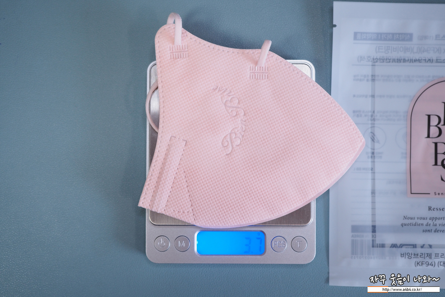 KF94 비앙브리제 마스크 대형 연한산호색 무게는 3.7g으로 타사 대형사이즈 새부리타입 마스크에 비교해서 가벼운 무게를 보여주고 있습니다.