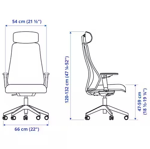 의자 사이즈는 성인용입니다. 약간 덩치 있는 성인도 무난하게 사용이 가능합니다. 매뉴얼 상의 하중은 110kg으로 안내되어 있습니다. 참고로 이케아의자는 사무실 용도로 테스트 되었다고 합니다. EN-1355-1에 따라 Type B로 분류된다고 하는데 무슨 말인지 검색해도 잘 안나오네요