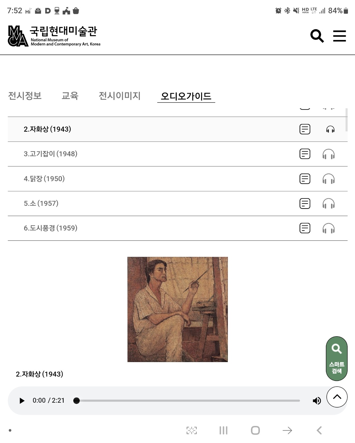 그러나 국립현대미술관 웹/모바일 사이트에서는 무료 오디오가이드가 제공되고 있습니다. UI는 다소 불편하지만 내용은 상당히 알차게 구성되어 있습니다. 이어폰 꼭 가지고 가세요.