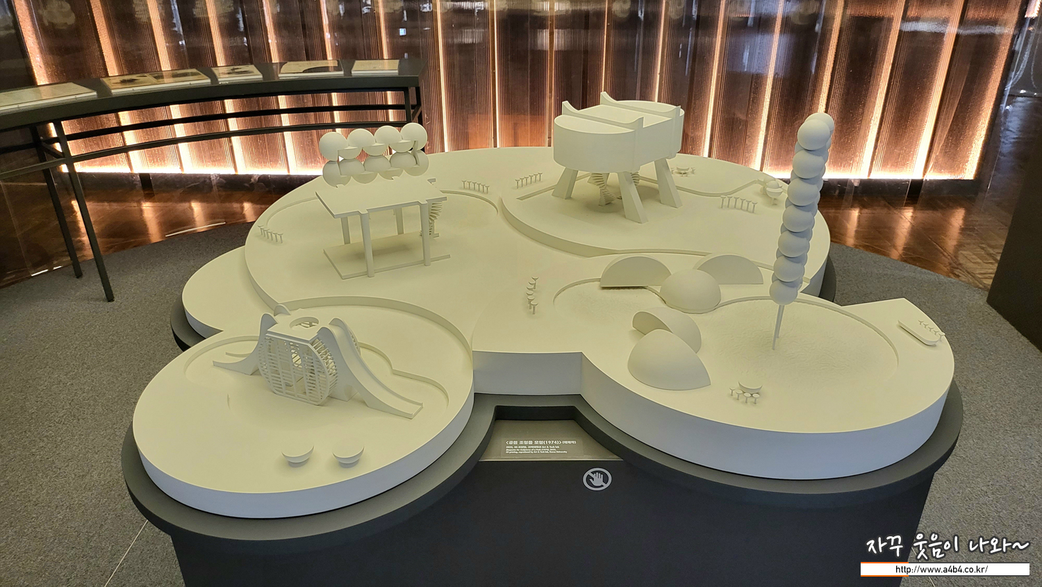 지금 보고 계시는 모형은 이 작품의 실물을 1/30로 축소한 것인데요, 동일한 형태의 반구를 반복적으로 쌓아 올린 이 작품은 하늘로 승천하는 용처럼 일정한 리듬을 가지고 상승하면서 우주와 생명의 운율을 시각적으로 느끼게 합니다.
