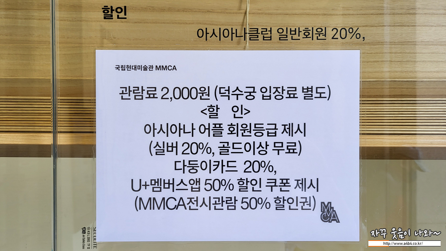 관람료는 2천 원 입니다. LGU+ 회원은 50% 할인, 아시아나클럽 골드는 무료, 실버는 20% 할인된 가격으로 입장이 가능합니다. 오랜만에 아시아나항공 앱을 열어보니 실버로 강등? 되어있네요. 20% 할인...