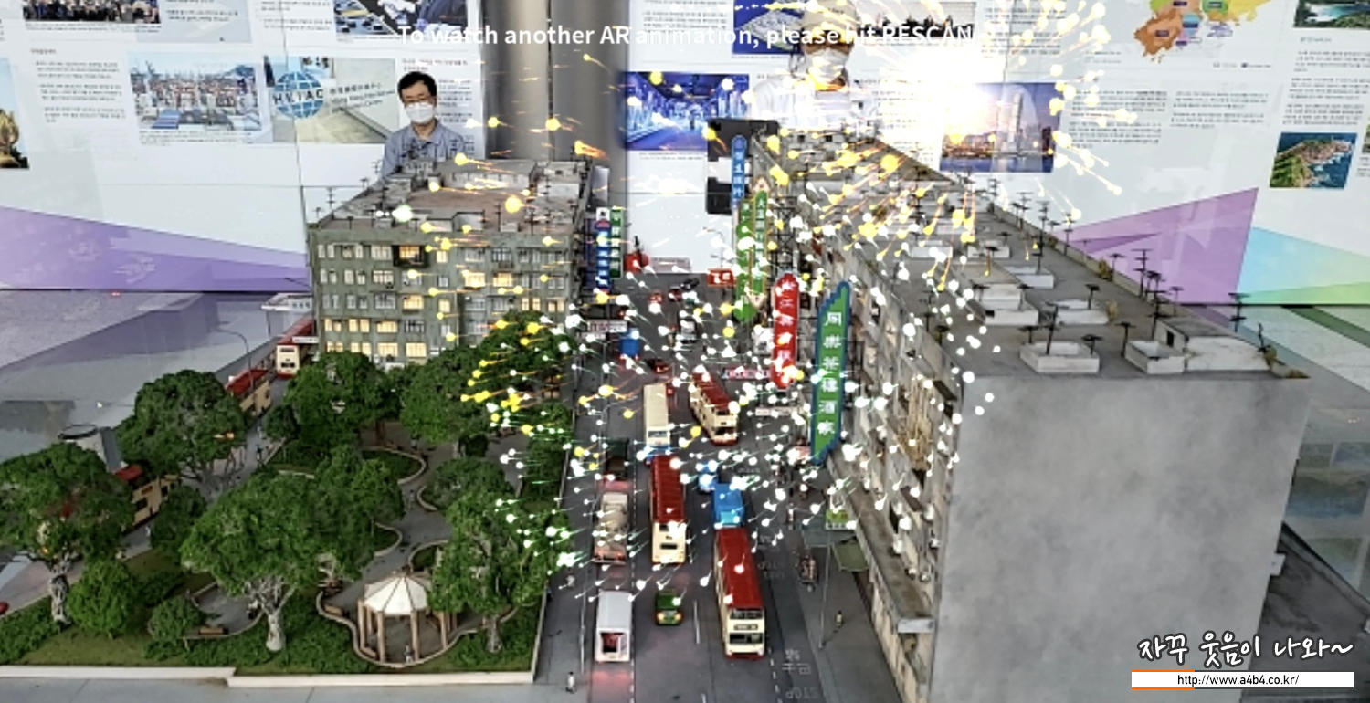 해당 공간은 QR 코드를 인식하고 접속하면 사진과 같은 증강현상 체험이 가능하다는... 크게 화려하지는 않지만 소소한 재미라고...