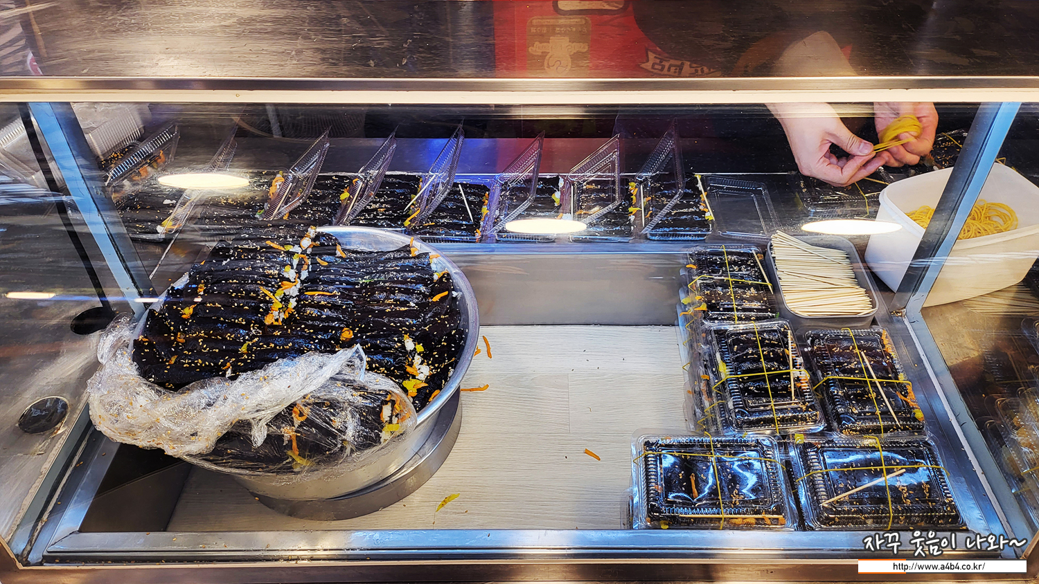 입구에서도 계속 김밥을 만들고 녹두전을 부치고 있으시네요. 그냥 자동으로 몸이 끌린다는...
