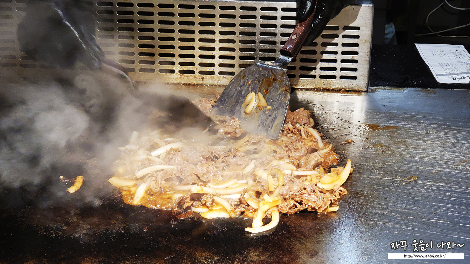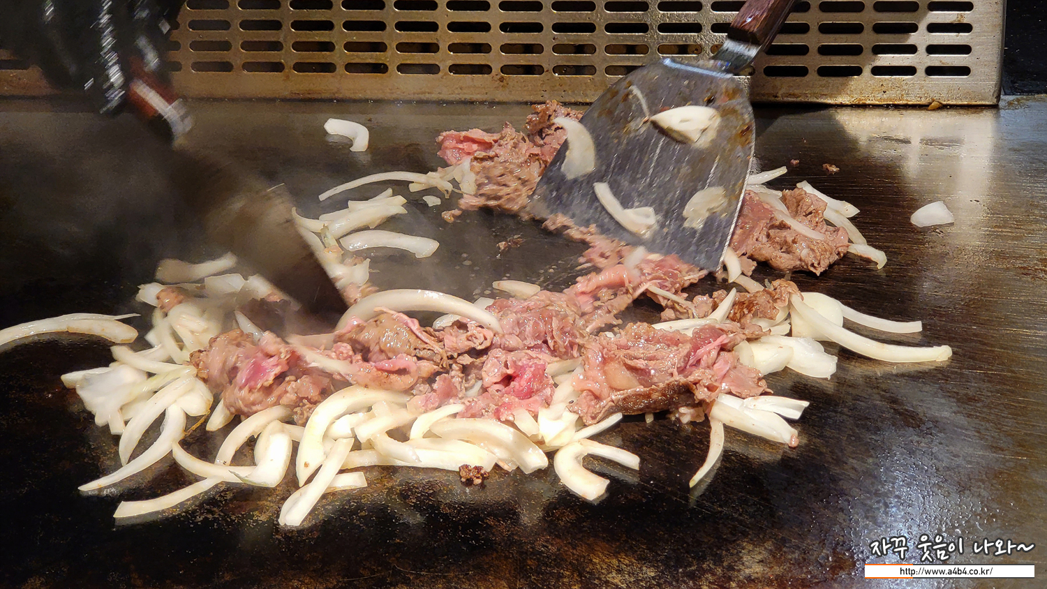 부채살과 소고기 볶음 철판요리 장면도 볼 수 있네요.