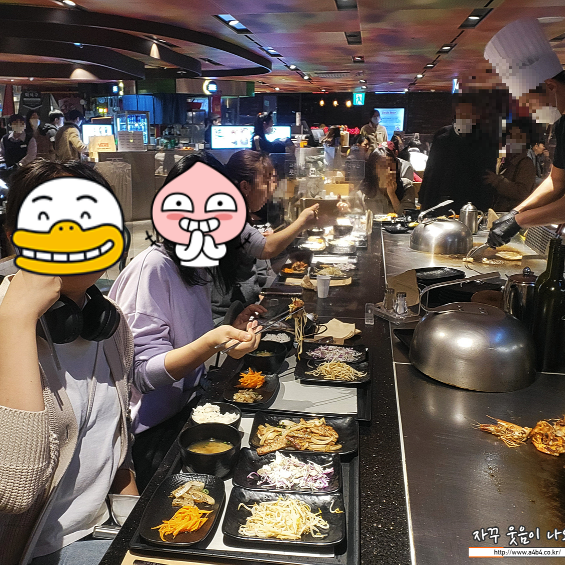 다만 식사후 쇼핑이나 다른 곳을 갈 것이라면 철판 앞에서 식사하시는 것은 비추, 냄새가...