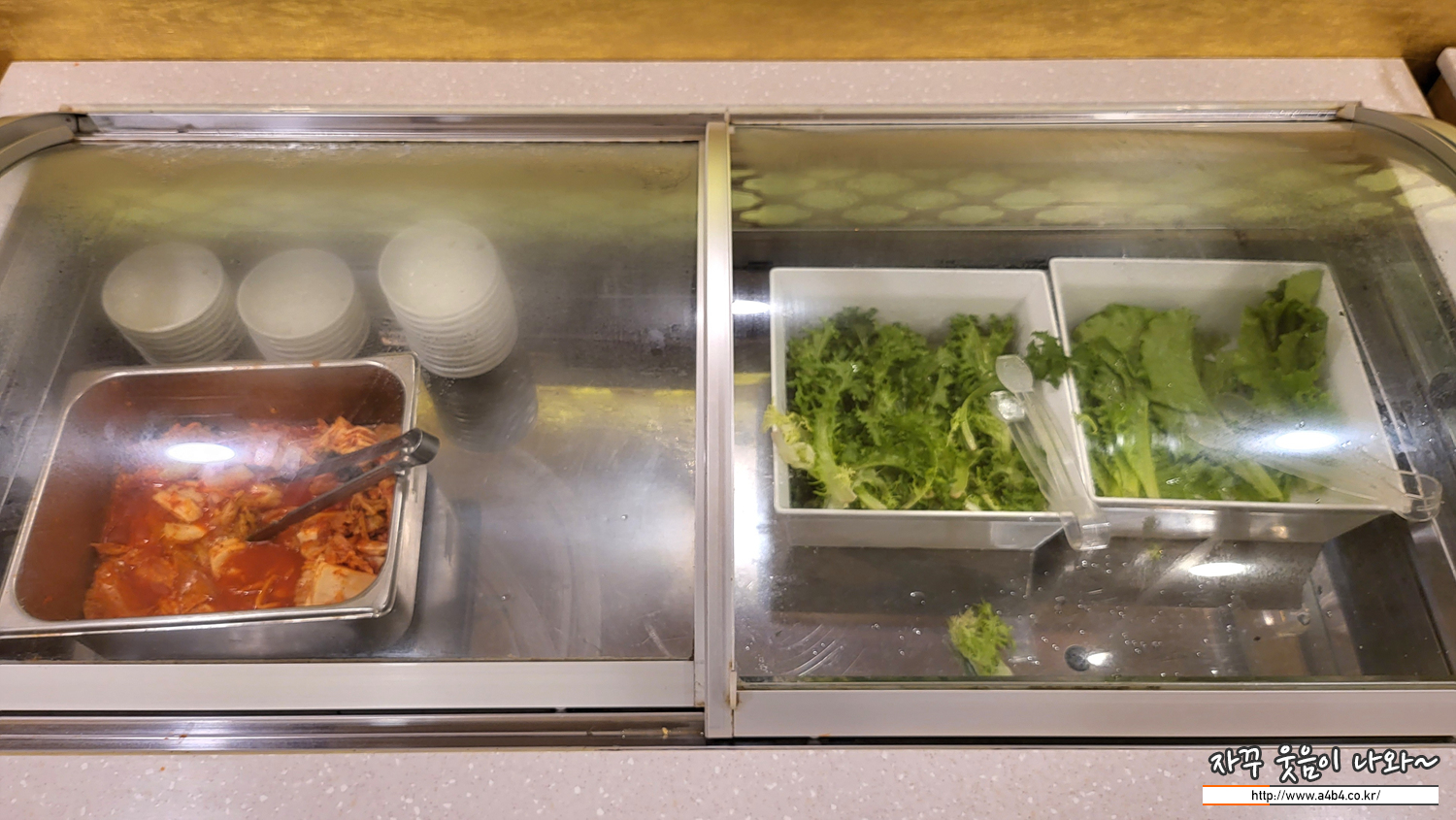 일반 테이블 공간은 이렇게, 4인 테이블 중심으로 구성되어 있습니다. 중앙 앞에는 생수나 그릇등을 셀프로 추가할 수 있게 되어 있어, 오히려 편하네요.
