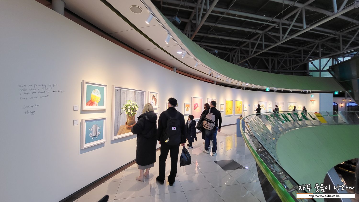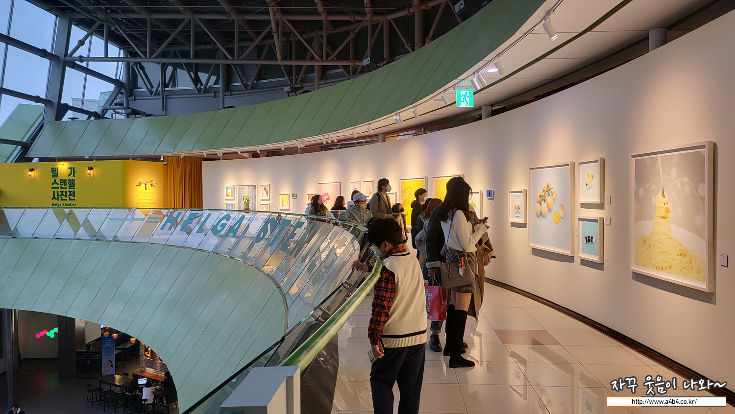 CxC 아트뮤지엄에서 열리고 있는 '헬가 스텐첼 사진전'의 마지막 공간입니다. 이번 공간은 이렇게 전시장 밖과 연결되어 있는 장소입니다. 아래층 롯데 시네마가 보이네요.