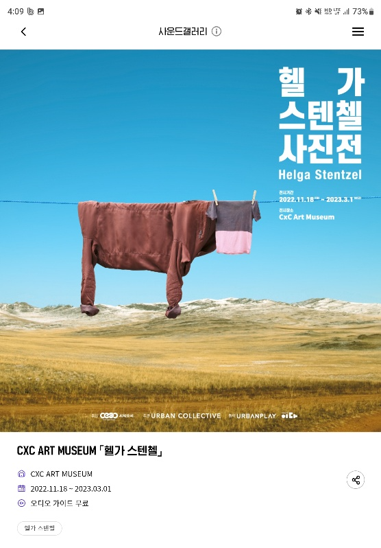 현대 H.Point 앱을 통해서 헬가 스텐첼 사진전 무료 도슨트 이용이 가능합니다. 다만 아쉽게도 이번에 전시된 많은 작품 중에서 단 13점만 설명되고 있습니다. 그래도 그녀의 작품을 이해하는데 많은 도움이 되니, 이어폰 꼭 챙겨 가세요.