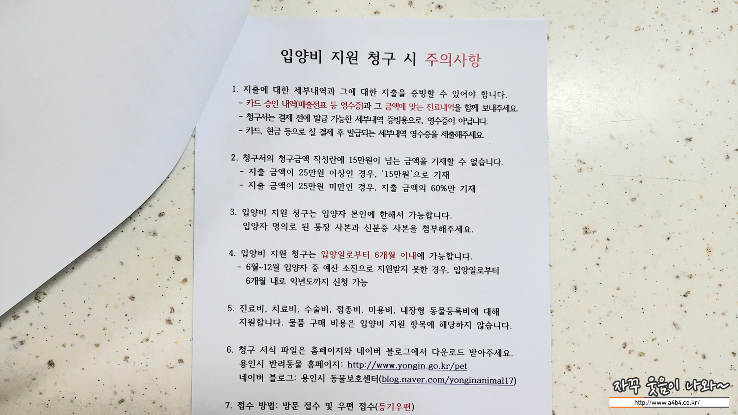 입양일로부터 6개월 이내에 청구 가능하며, 진료비, 예방접종비, 미용비 등의 금액을 1회에 한해 지원받을 수 있습니다. 지출 금액기 25만원 이상의 경우 최대 15만원까지 지원된다 합니다.