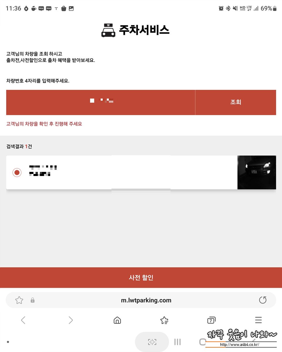 차량넘버를 입력하고 할인권을 적용하면 할인된 가격에 홋데월드몰 주차장 이용이 가능합니다.