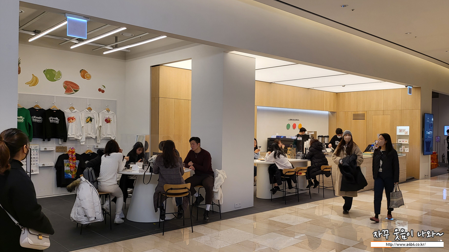 최근 MZ세대(20~30대)의 인기를 얻고 있는 패션 브랜드 ‘김씨네과일’도 입점? 되어 있습니다.