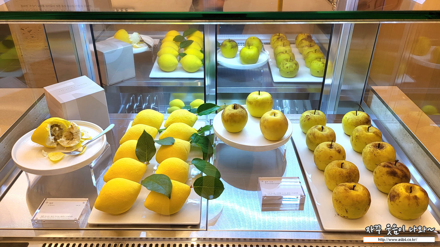 먼저 사과와 레몬 모양의 디저트가 보입니다. 맛은 모르겠지만 디테일이 후덜덜 합니다. 먹기에는 너무 아까운데...