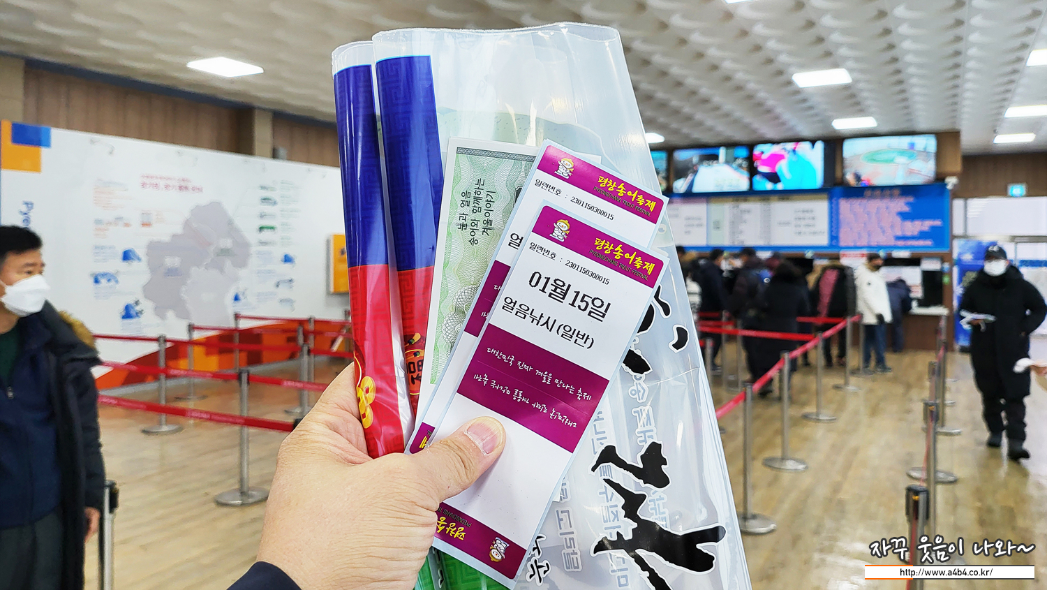 티켓팅 하고 평창 송어축제 행사장으로 이동합니다. 티켓팅과 입장은 오전 9시부터 열리고요. 발권 후 낚시터로 입장이 가능하니, 이곳 티켓팅 장소에서만 대기하시면 됩니다. 다만 명당자리 차지를 위해서는 오전 8시 전에는 오셔야 가능해 보이네요. 참고로 평창 송어축제장은 반려견 강아지 출입금지 입니다.