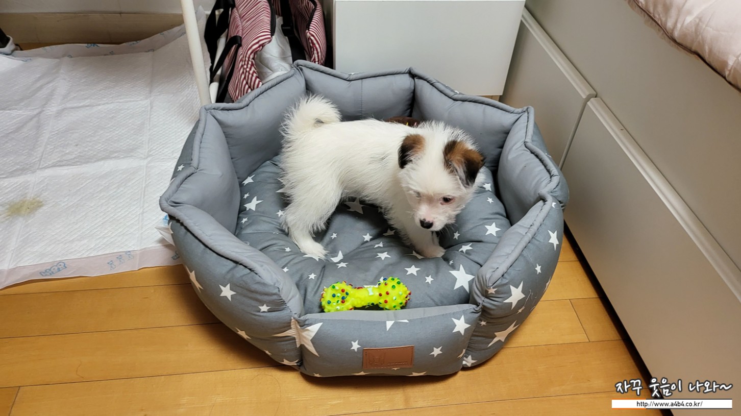 아래는 입양한 날 찍은 사진인데요. 불과 두 달 조금 넘은 사이에 두 배로 커버렸네요. 몸무게도 3킬로가 넘는다는...