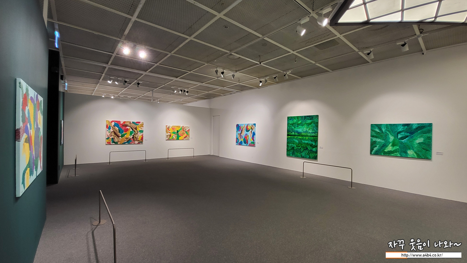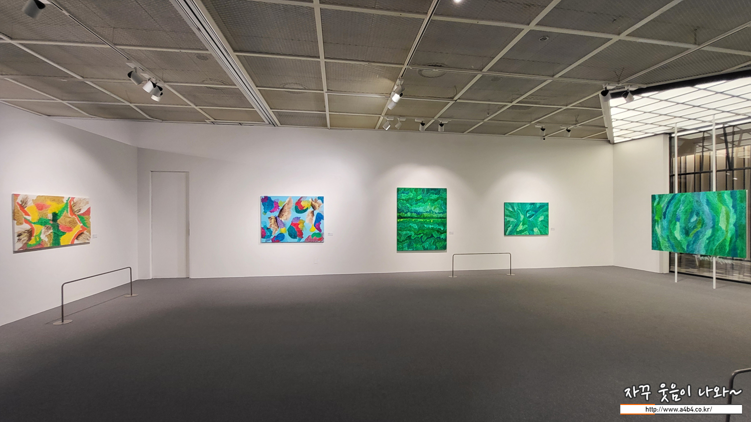 이번 작품들은 블루, 레드, 그린 등 작품 컬러에 맞춰 전시공간의 분위기도 세팅되어 있습니다.