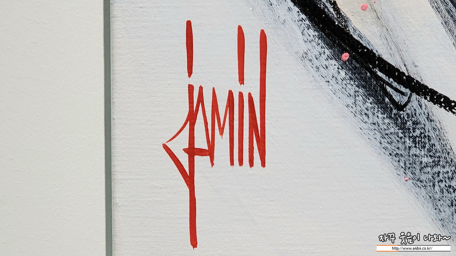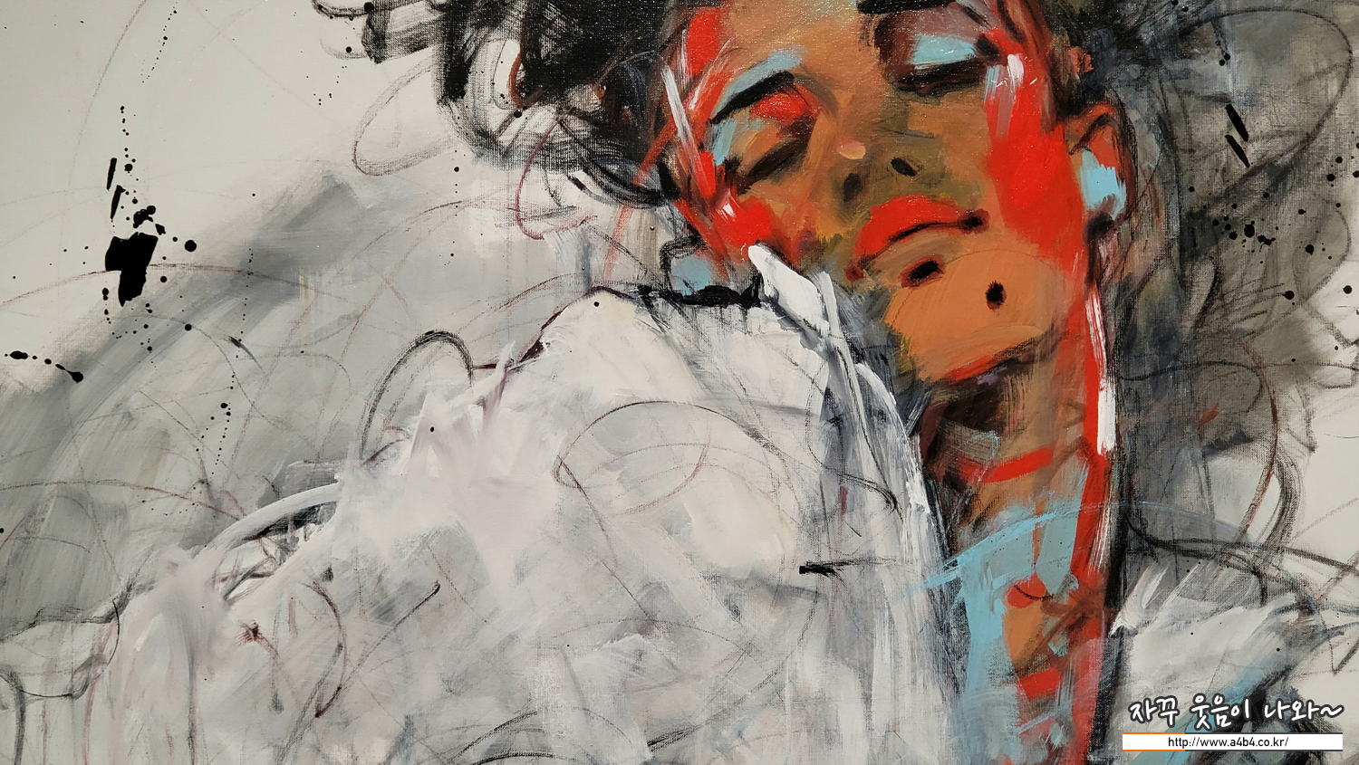 그러나 작품공간을 지나 뒤로 돌아서면 앞부분과 상반된 흰 캔버스에 작업한 자맹의 '내면자화상' 작품을 만나볼 수 있습니다.