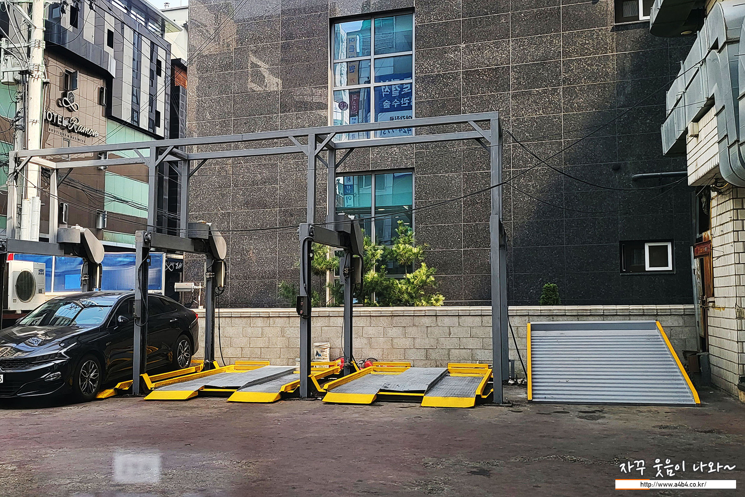 참고로 이렇게 생긴 주차장도 들어가지 못합니다. 드드드드 긁히는 소리가...
