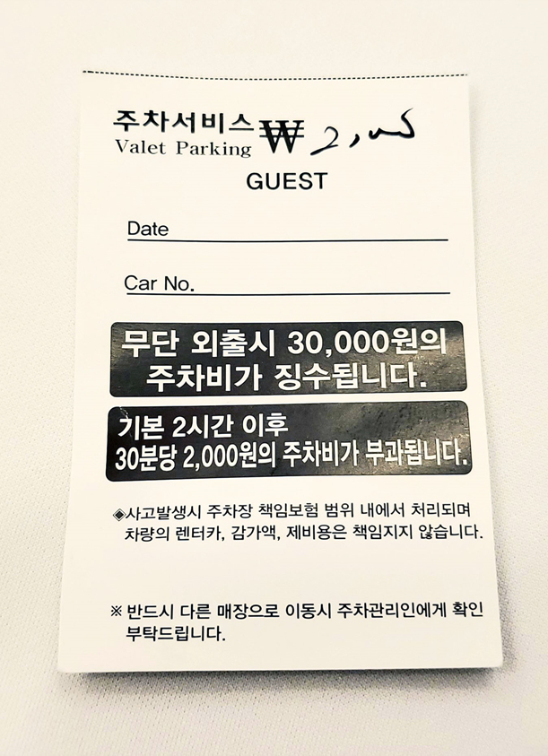 위치는 잠실 석촌호수 넘어 남쪽으로... 석촌역 근처에 위치해 있습니다. 단독건물로 건물 앞에 넉넉하게 주차장이 준비되어 있습니다. 발렛 주차로 스스로 주차해도 발렛피 2천 원을 지불해야 합니다. 항상 가장 아까운 돈이 바로 이 주차대행 비용이라는 생각이. 제가 방문한 시간에는 차가 많지 않아서 더욱 더...