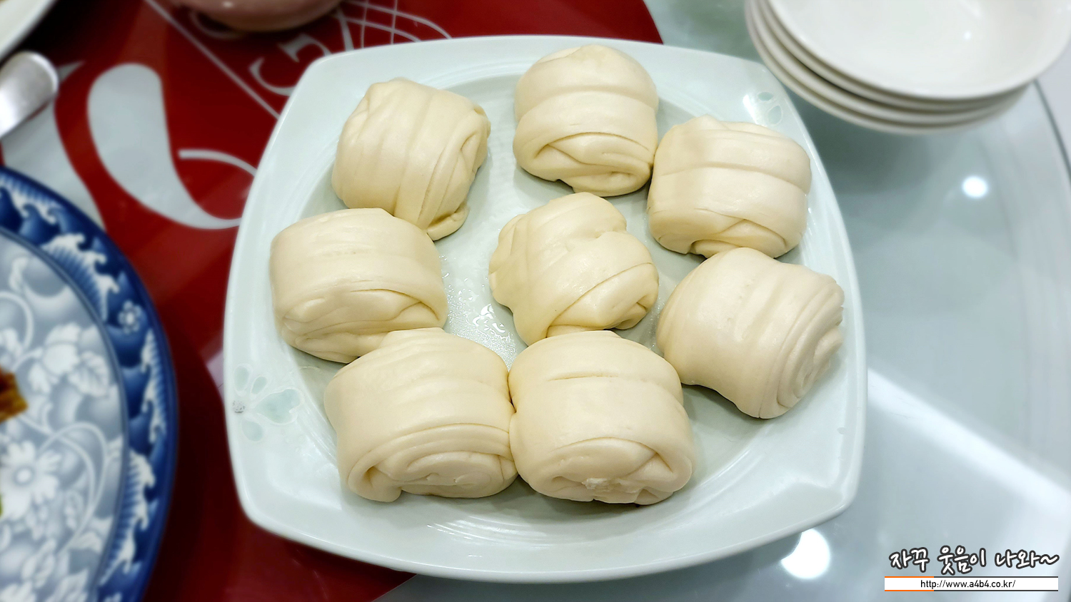 꽃빵을 얇게 뜯어서 고추잡채를 싸 먹어면... 바로 이맛...
