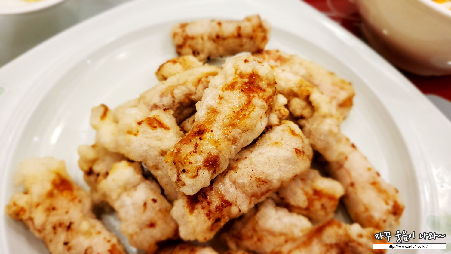 손가락 크기 정도로 잘려 튀겨진 돼지고기 탕수육입니다. 튀김옷도 두껍지 않고 육즙 가득한 뜨거운 돼지고기가 조리되어 나왔네요. 튀김옷도 깥끔하고 식감과 맛도 매우 만족합니다.