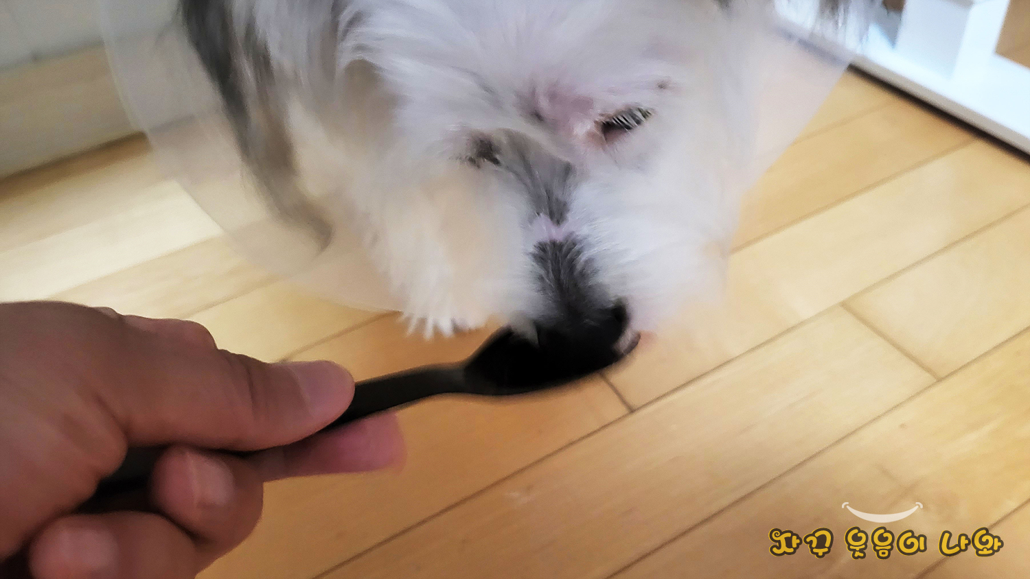 보통은 마취에서 잘 깨지 않아서 힘들어 하고 움직이지도 않고 잘 먹지도 않는다고 합니다. 강아지 중선화 수술 후 회복기간이 다소 걸린다고 하는데요. 이녀석은 마취 깨고 잠시 후부터 평소와 다름없는 행동을 보이네요.