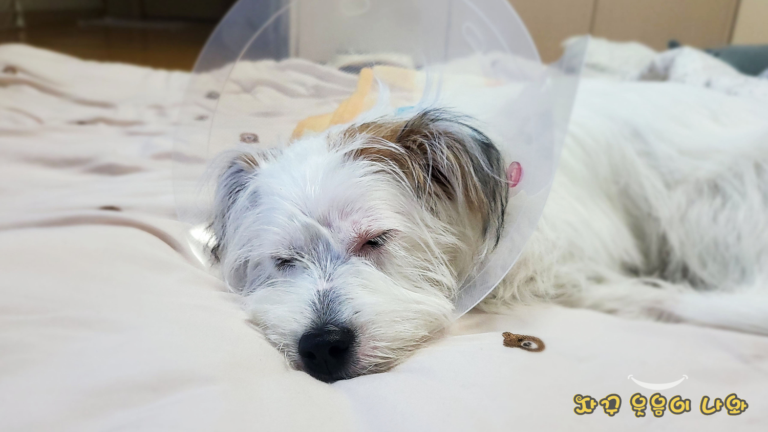 강아지 중성화 수술 회복기간이 일주일 정도 걸린다고 했는데요. 수술 후 3일차 설탕이 상황입니다.