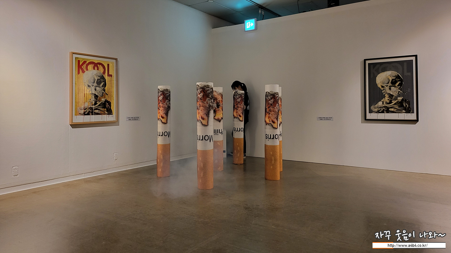 커튼을 넘어 전시공간에 들어오니 운영하시는 분께서 기기를 작동 하시네요. 말보로담배 조형물 뒤에서 흰 연기그 나옵니다.