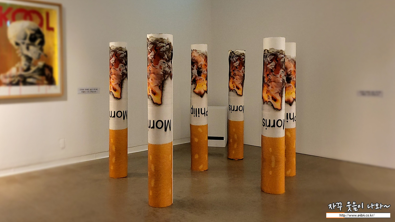 이번 Room 711 전시회의 마지막공간 - 침대의 뒷부분과 흘러내리는 필립모리스 로고가 보입니다.