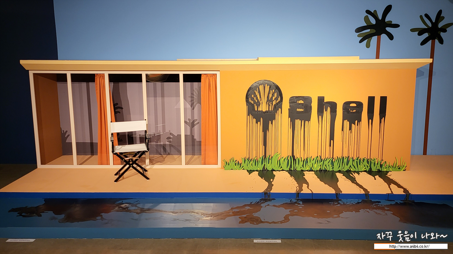 섹션 2 '진화의 시리즈'에서는 영국의 유명한 현대화가인 데이비드 호크니와 클로드 모네의 수련 작품을 차용해서 작업한 연작들이 전시되고 있습니다. 특히 글로벌 거대 정유회사로 인한 환경오염에 대한 위험성을 작품으로 전달하는...
