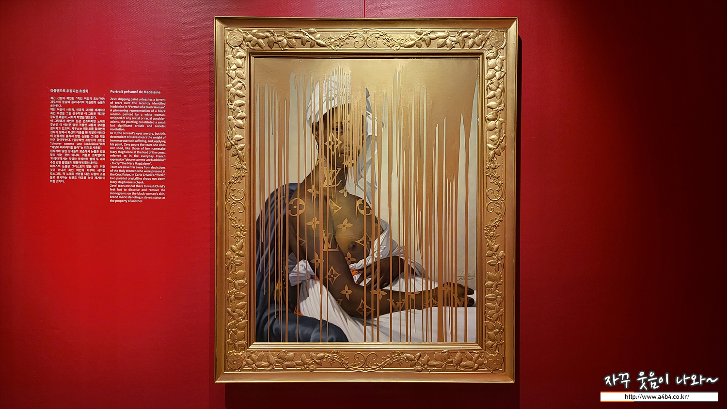 최근 신원이 확인된 흑인 여성의 초상"에서 제우스의 물감이 흘러내리며 마들렌의 눈물이. 쏟아진다.
