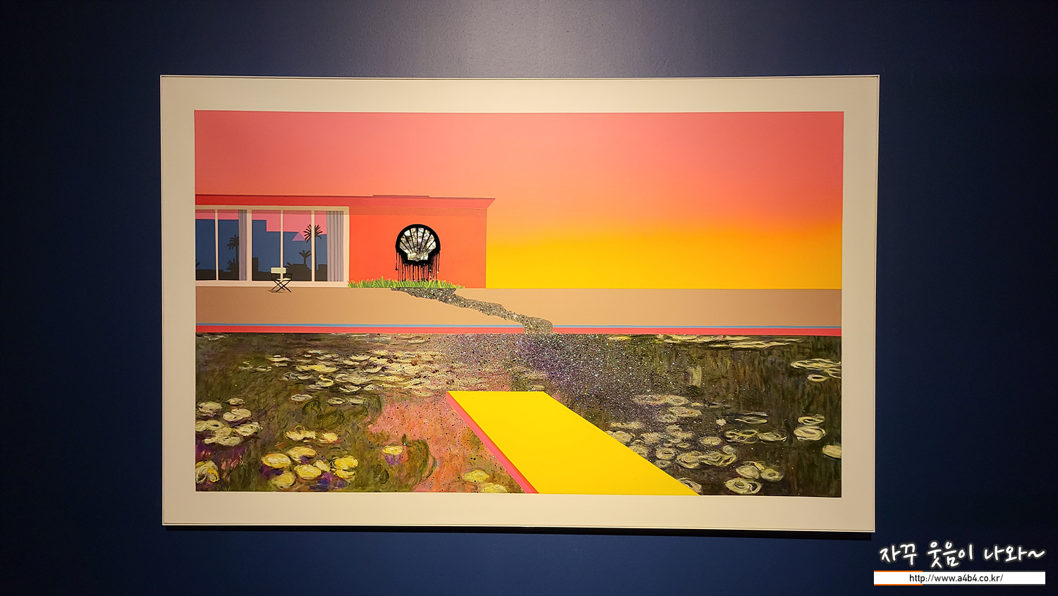 다시 쉘로 돌아와서 이 연작이 다수 전시되어 있는데요. 하나하나 이동하면서 보면 마치 쉘 로고에서 흘러나오는 원유가 모네의 수련이 있는 연못을 점점 검게 오염시키는 느낌이 들게 합니다.