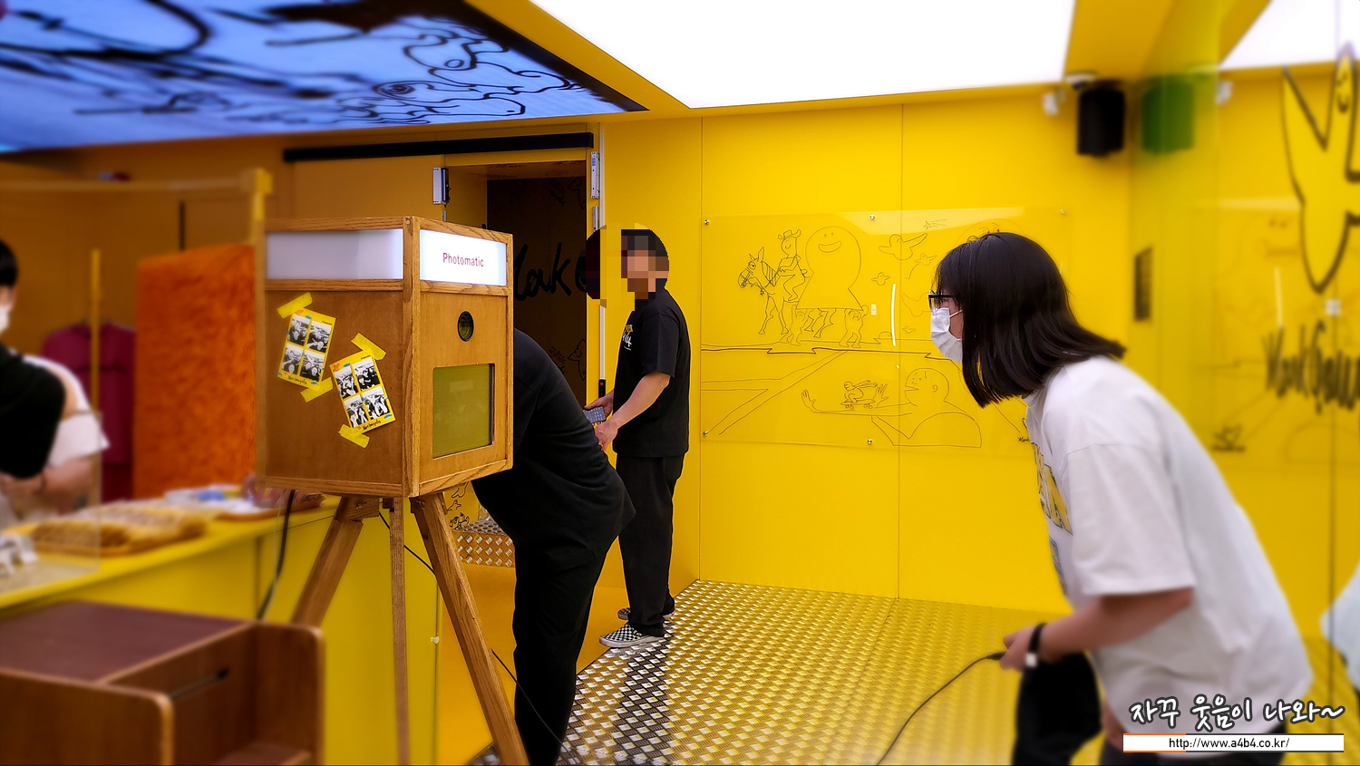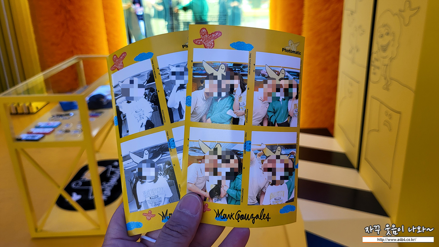 요즘 인기인 하루필름, 인생네컷 등과 같이 노란 프레임속 곤잘레스 그림이 그려진 네컷사진을 무료로 찍을 수 있습니다.