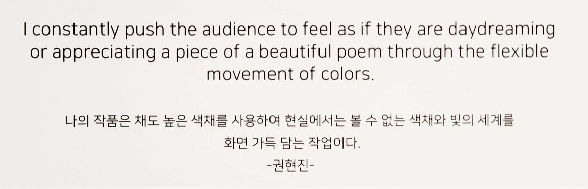 여기까지가 잠실 롯데월드몰 2층 넥스트 뮤지엄에서 열리고 있는 권현진 작가의 개인전 작품소개입니다.